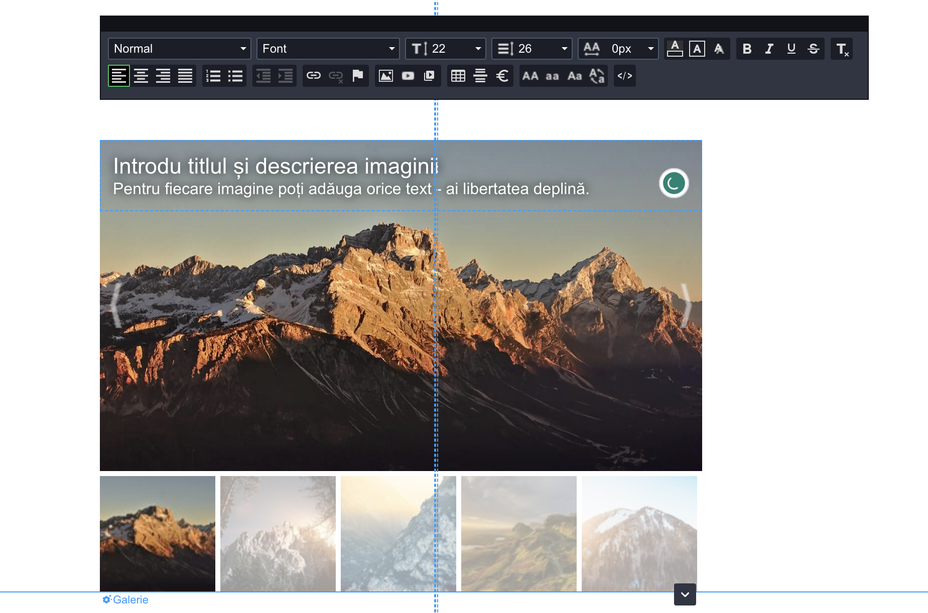 Vor fi adăugate câteva fotografii implicite în galerie. Le puteți schimba cu ușurință în secțiunea „Modificarea imaginilor”.