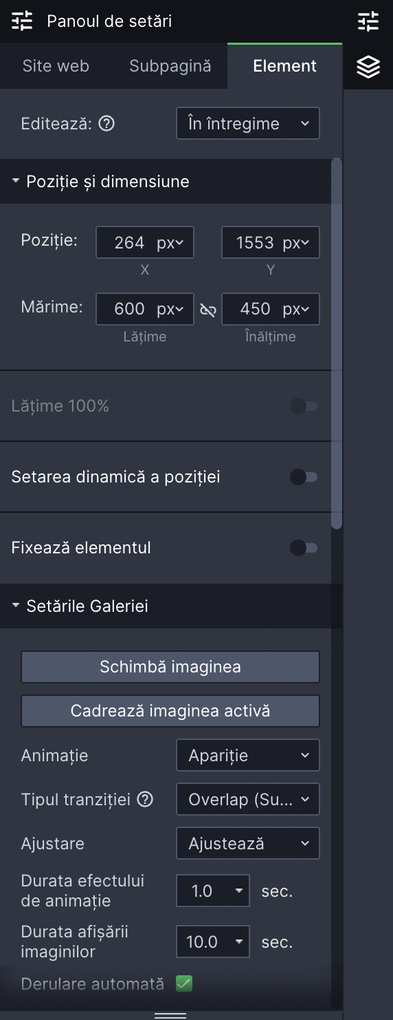 Există câteva setări suplimentare în secțiunea Setări Galerie: