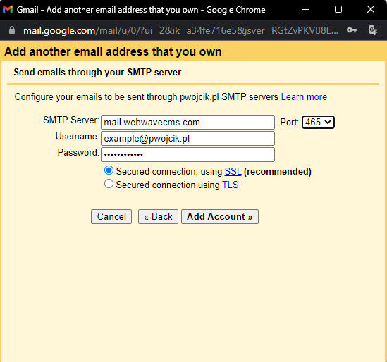 În acest caz, trebuie să puteți trimite e-mailuri de la adresa dvs. WebWave prin clientul Gmail.