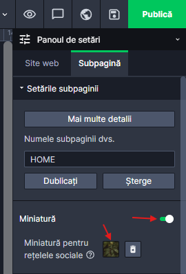 Când vă publicați site-ul pe Facebook sau pe alte rețele sociale, acesta se afișează în mod normal cu titlul site-ului, descrierea și o miniatură. În WebWave - constructor de site-uri fără codare - o miniatură este generată automat când publicați site-ul dvs., dar poate fi schimbată cu ușurință într-o imagine la alegere. În acest articol veți învăța cum să construiți un site web cu o miniatură la alegere.