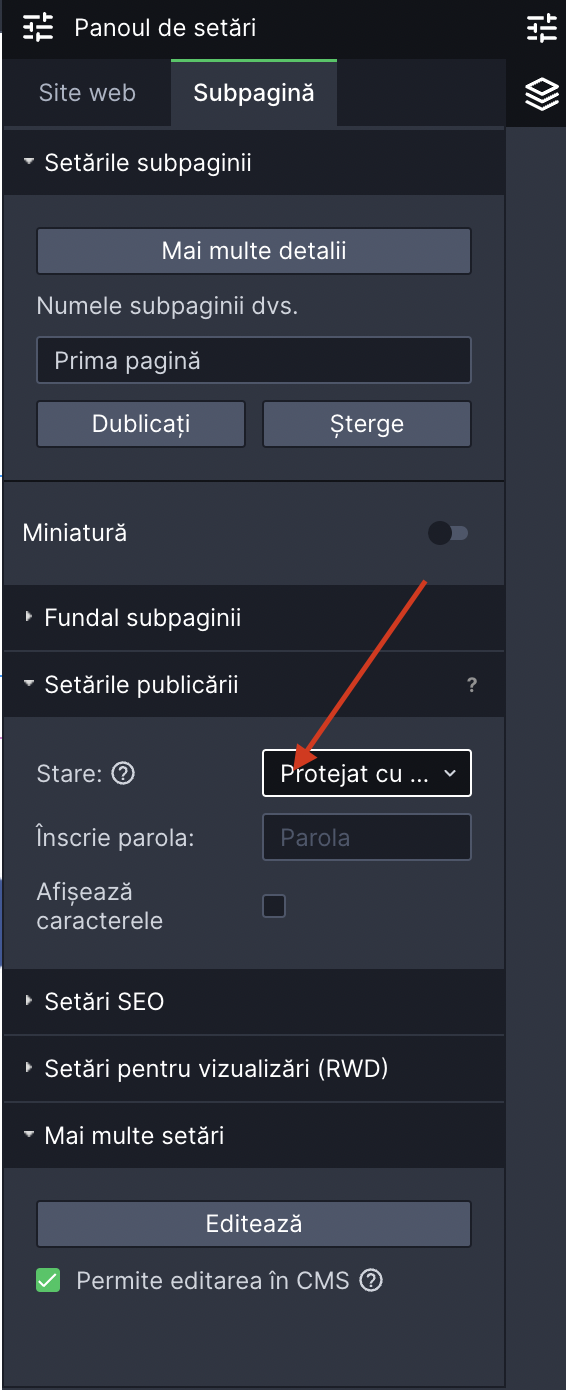 Protecția prin parolă vă permite să controlați cine vede conținutul pe anumite subpagini, deoarece accesul la acestea au doar utilizatori care cunosc parola.