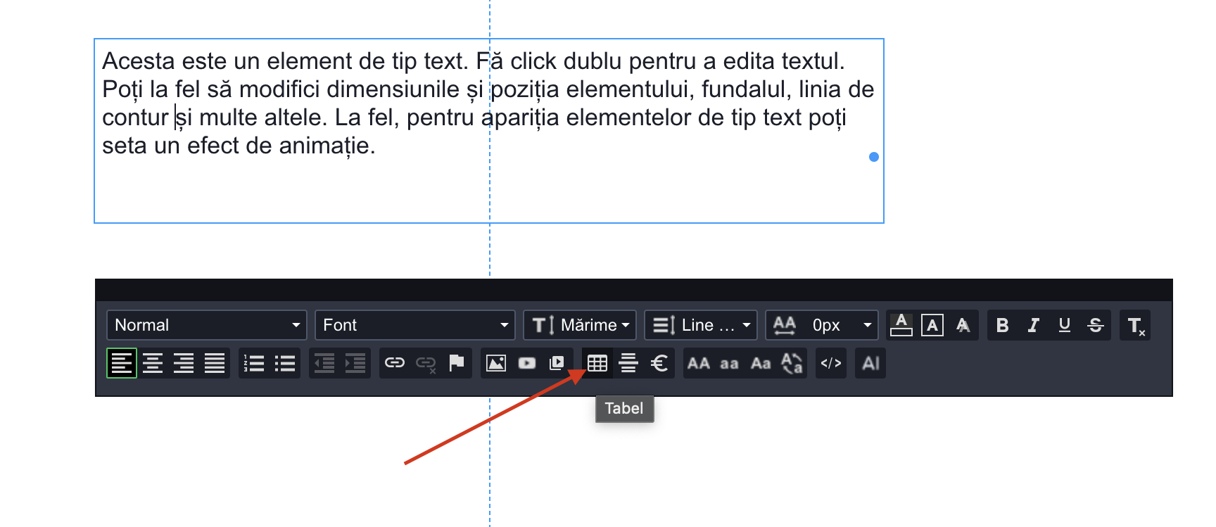 Tabelele create în WebWave pot fi editate cu ușurință în ceea ce privește dimensiunea și stilul acestora. Pentru a face acest lucru, apăsa click dreapta pe un tabel și selectează una dintre opțiunile prezentate în funcție de necesitățile pe care le ai.