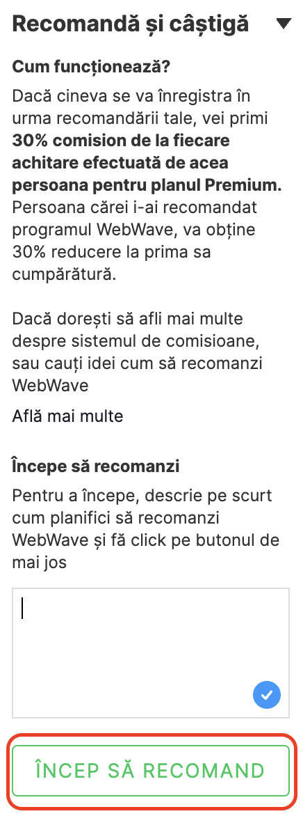 WebWave CMS - www creator de pagini web fără codare - are propriul program de recomandare.