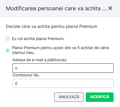 Puteți schimba partea de plată către client și pentru un site web premium existent.